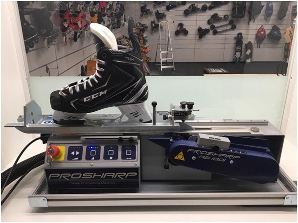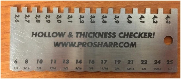 Žlábek tedy máme. Teď už je na personálu, aby správně seřídil stroj, zarovnal výšku hran a správně je strhl. K zarovnávání hran se používá speciální měrka, která odhalí, pokud je některá z hran vyšší. V takovém případě je nutné tuto hranu více zbrousit. Po přebroušení přichází další, velice důležitá část– strhnutí hran. Broušením dochází k třepení materiálu, ze kterého nože jsou, a v případě, když by ke stržení nedošlo, brusle by působila ještě tupějším dojmem, než předtím. Výjimkou jsou pouze nože pokryté karbonem, který zabraňuje právě výše zmiňovanému třepení. Takové nože se buď nestrhávají vůbec, nebo pouze speciálním brouskem.