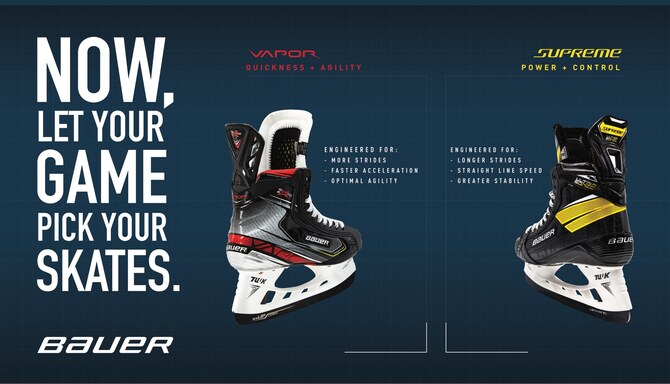 S novou řadou bruslí Supreme a vlajkovou lodí – bruslemi Bauer Supreme Ultrasonic přichází i doposud největší změna v historii velikosti bruslí. 3D Fit systém a nový mezistupeň mezi juniorskými a seniorskými bruslemi v podobě INTERMEDIATE.