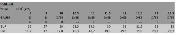 Velikosti bruslí dítě
