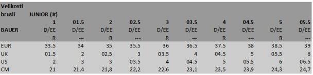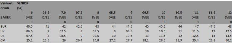 Velikosti bruslí senior